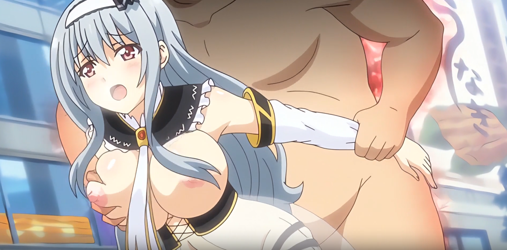 制服のブラウスをはだける。